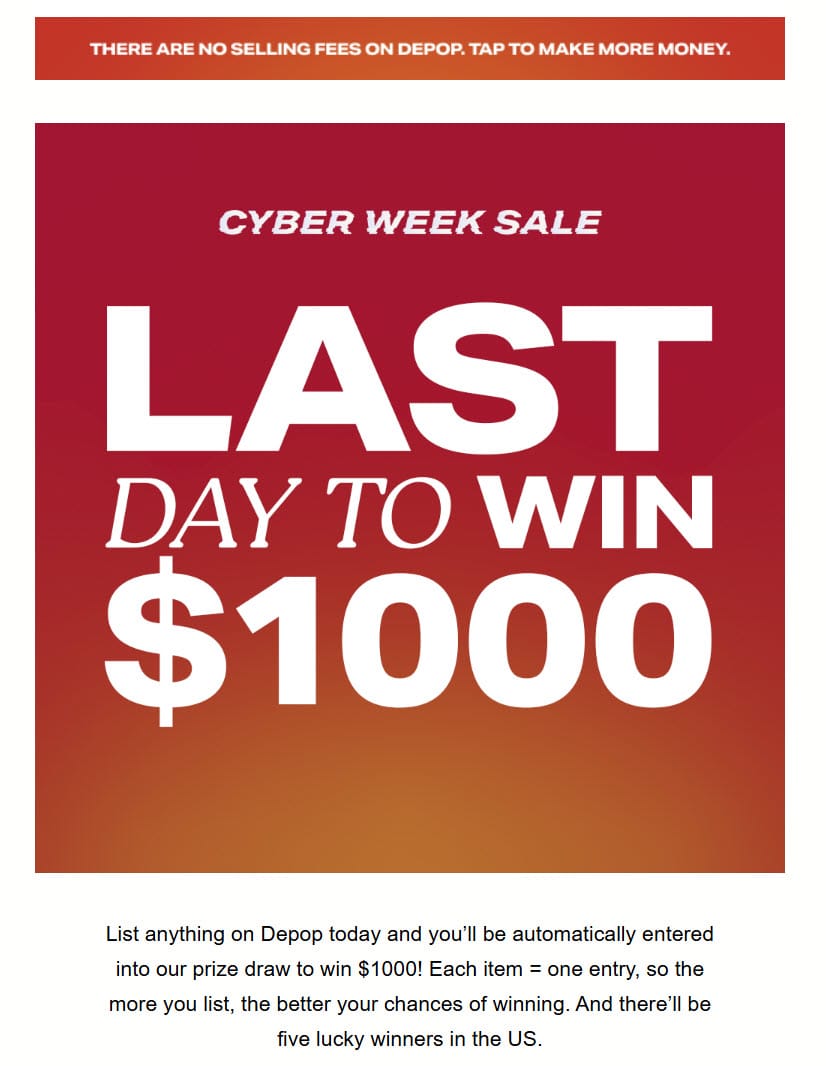 Depop Draws Sellers With Cyber Week Listing Sweepstakes