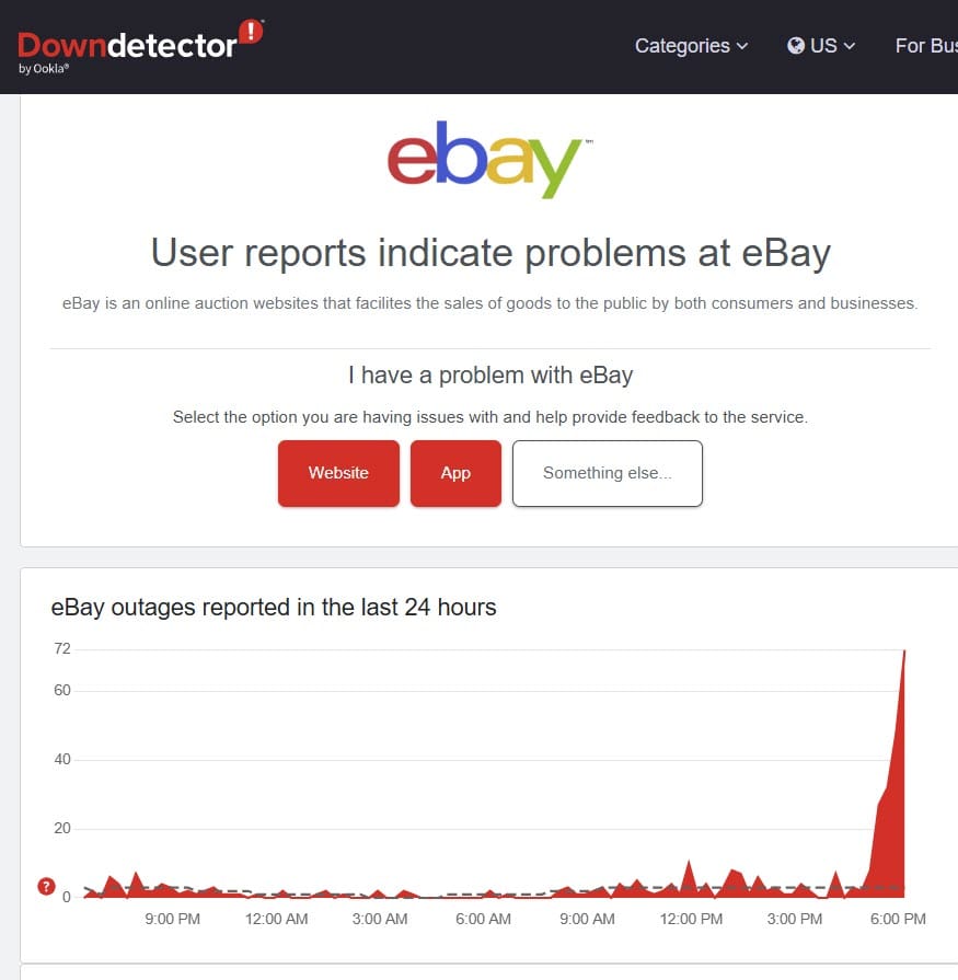 As usual, the eBay system status page does not show any outages or disruptions despite a flood of reports across eBay's forums, social media sites, and Down Detector.
