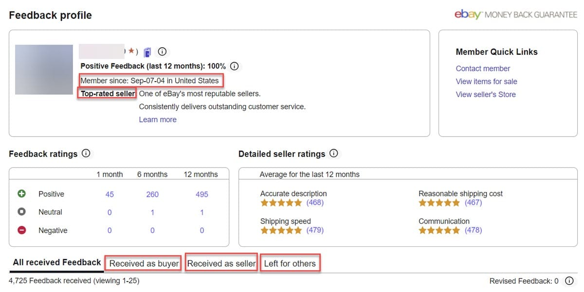 For example, one very common red flag to look for to avoid scammers engaging in triangulation or other kinds of fraud is to compare the shipping location on item listing pages to the account registration country on the feedback profile page - if the listing says it ships from a US location, but the account is registered overseas, it's not always proof of a scam but buyers should absolutely proceed with caution.