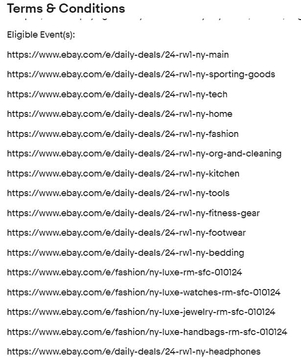 As usual, the terms and conditions come with a laundry list of "events" for qualifying items, indicating the discount is likely being funded at least in part by participating sellers.