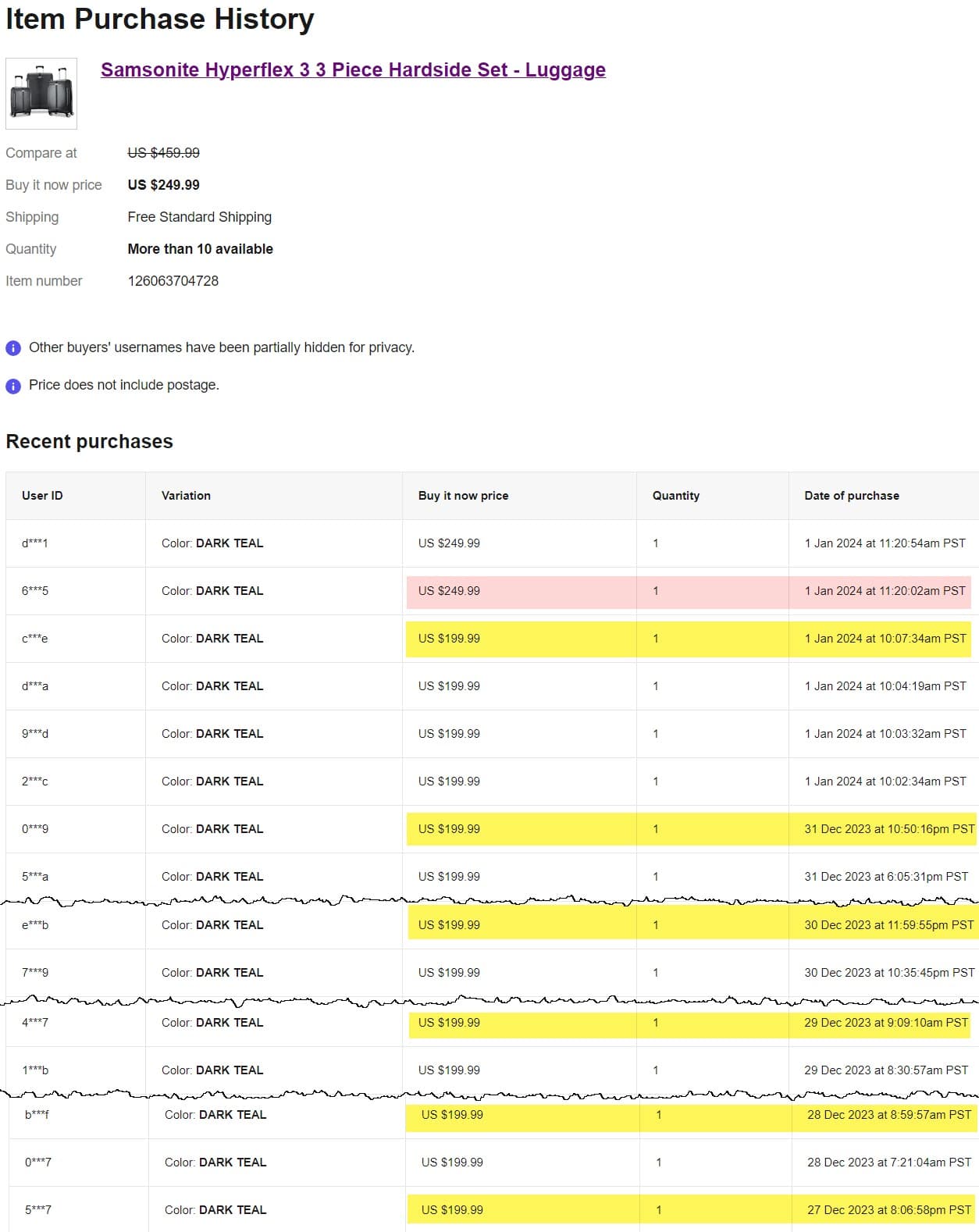 Once again we can see Samsonite also increased the price right before this coupon went live so the final price with the discount would be exactly the same as the price they were selling it for just hours before with no coupon needed.