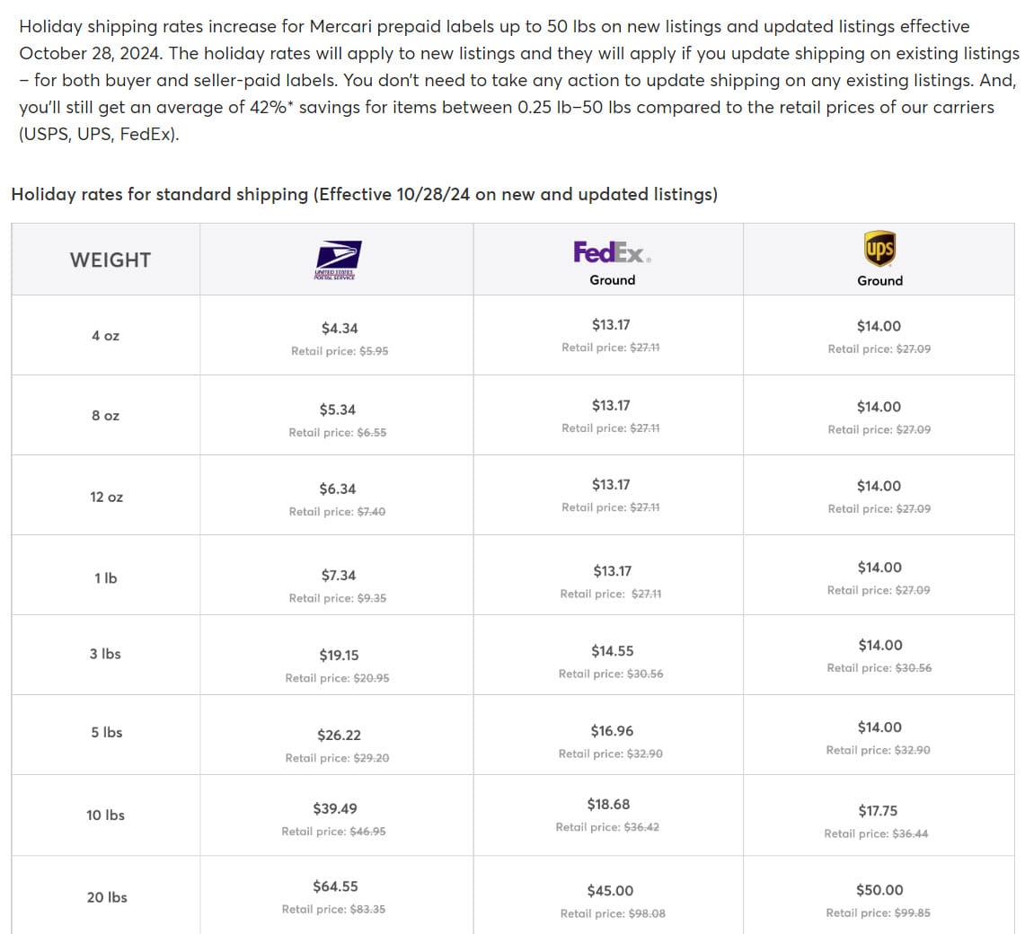 Mercari sent out a notice to sellers a few days ahead of the change and also updated their help and policy pages to provide a chart of the holiday rates.
