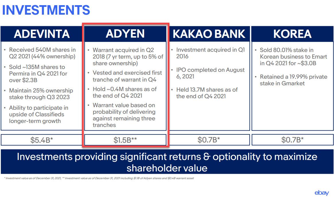 eBay announced in the Q4 21 earnings call that they had completed the Managed Payments Migration and exercised the first tranche of warrants.