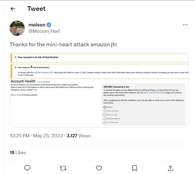 Amazon sellers have been put through the wringer this week receiving warnings about account deactivation as glitches prevented them from completing identity verification required by the INFORM Consumers Act.