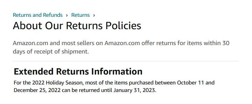 We recently announced that our returns window would be extended in anticipation of customers shopping early for the 2022 holidays. Based on your feedback, we are revising the dates of our holiday returns policy.
