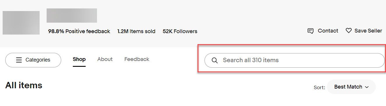 For sellers who pay for a Store subscription, the store page includes a dedicated search function that will allow a buyer to search for items only within that seller's store.