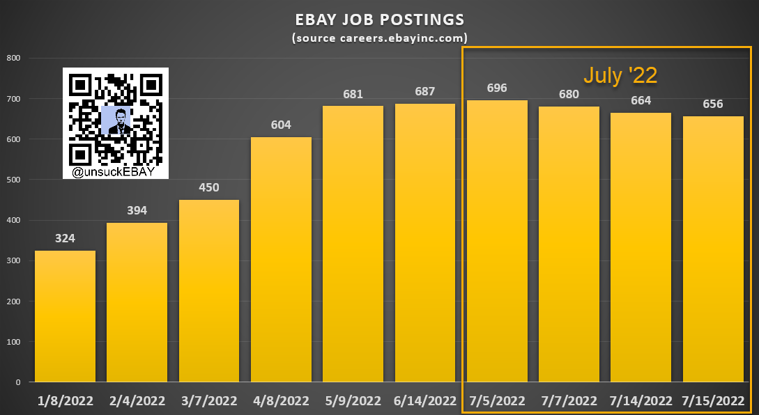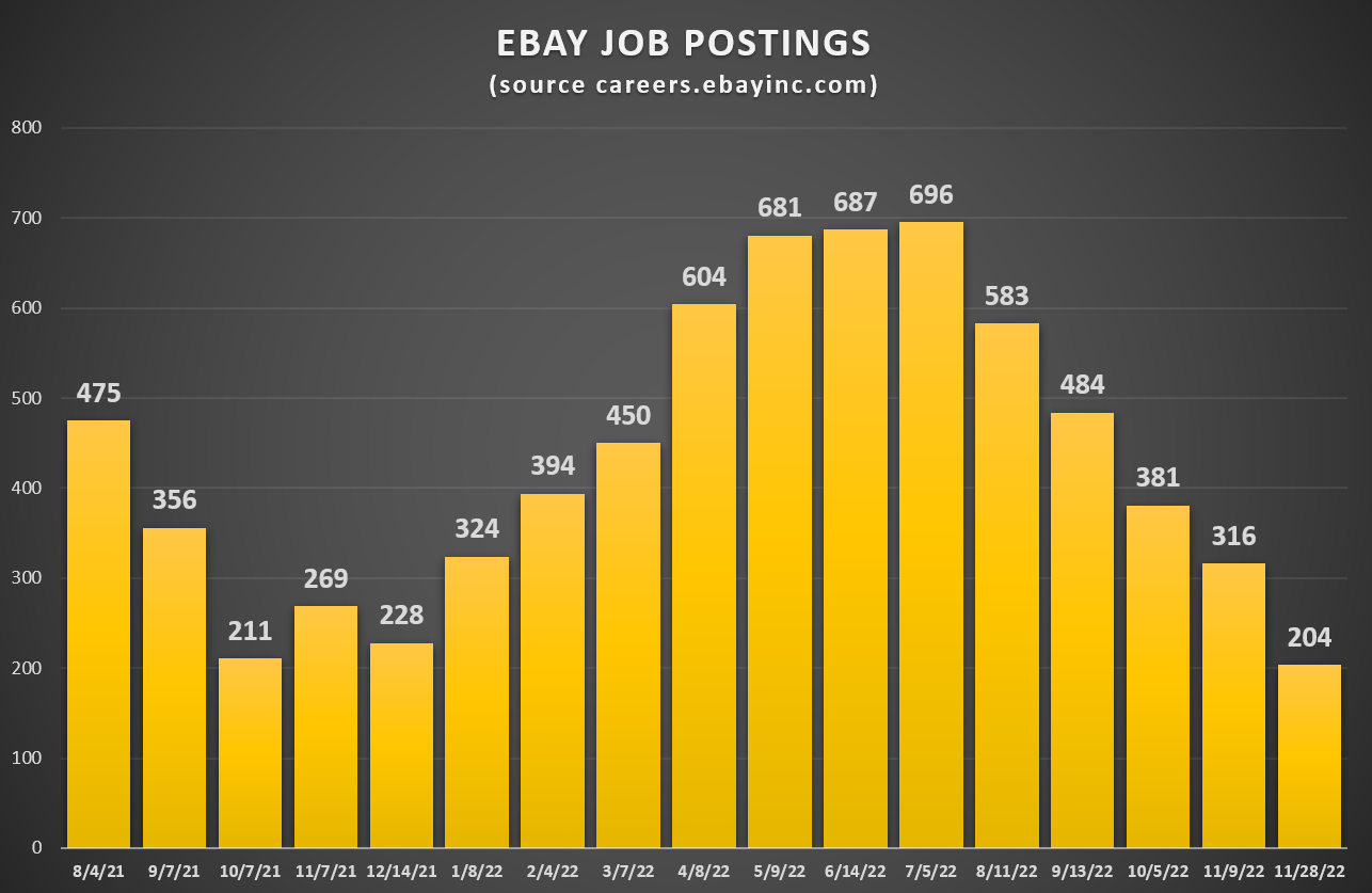 We'll be keeping a close eye on these stats and any other signs eBay may be pulling back on hiring and/or considering another round of layoffs in the near-term - stay tuned!