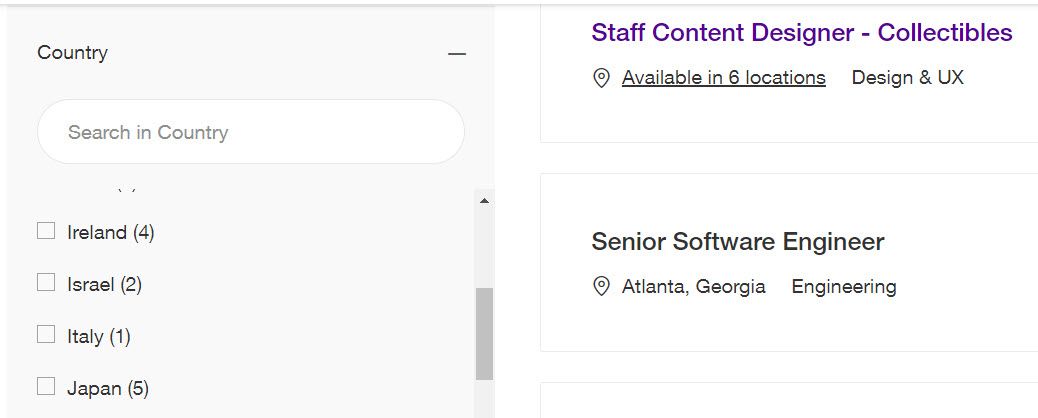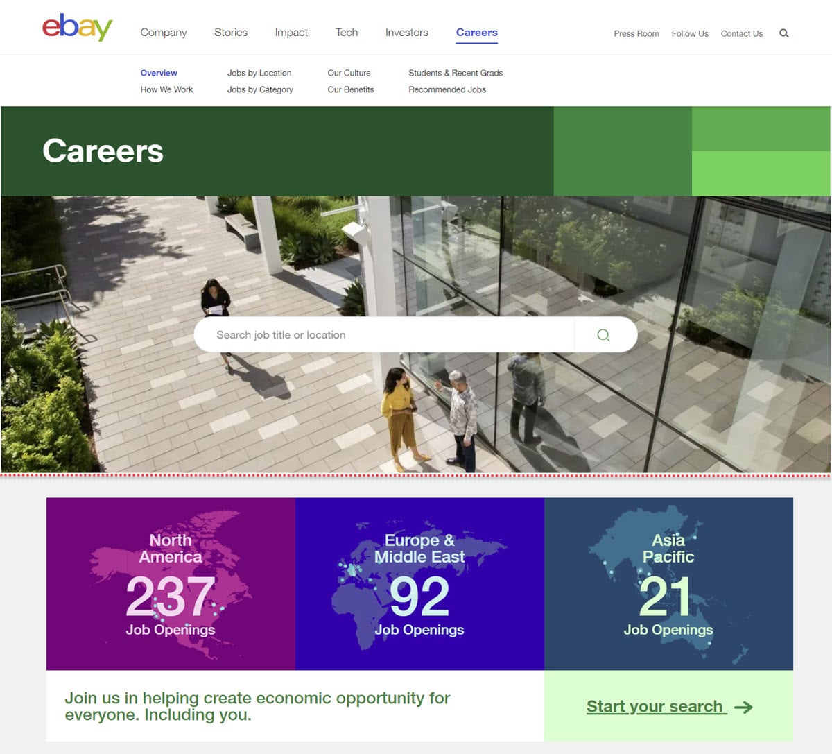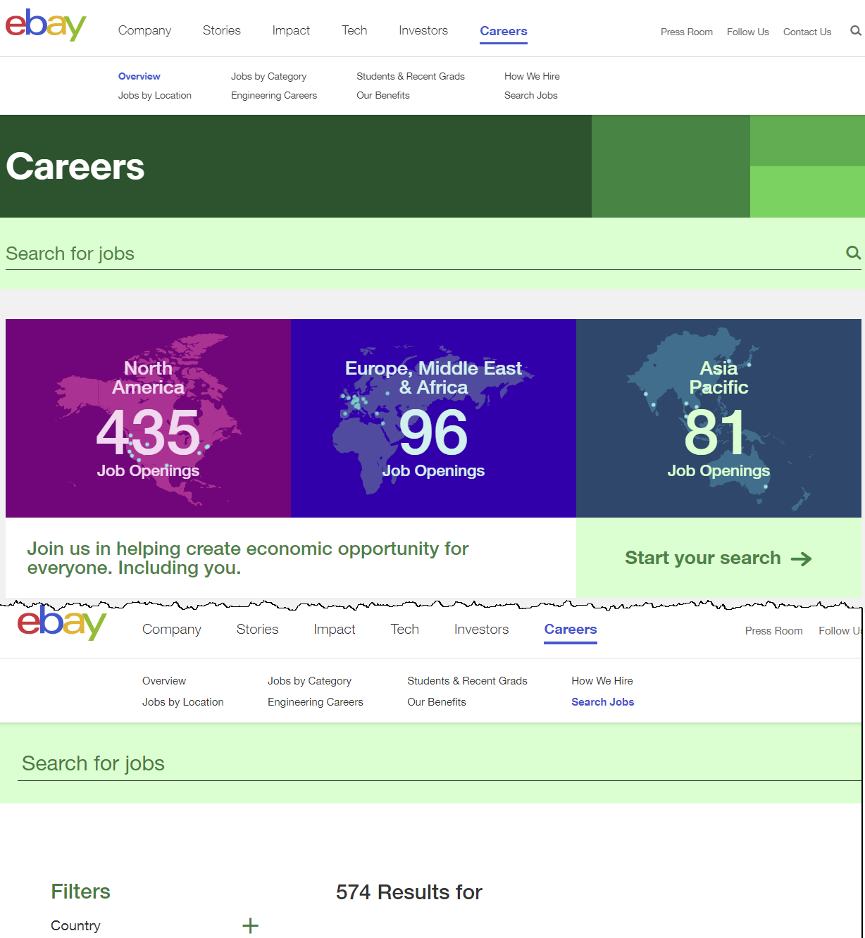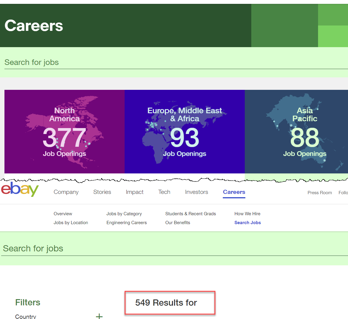 eBay has once again changed the careers page to show one consolidated number instead of the previous regional breakdown.