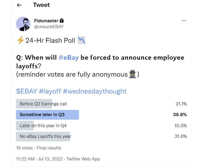 One very informal and not at all scientific Twitter poll didn't reveal much confidence in the job outlook at eBay either. 😉