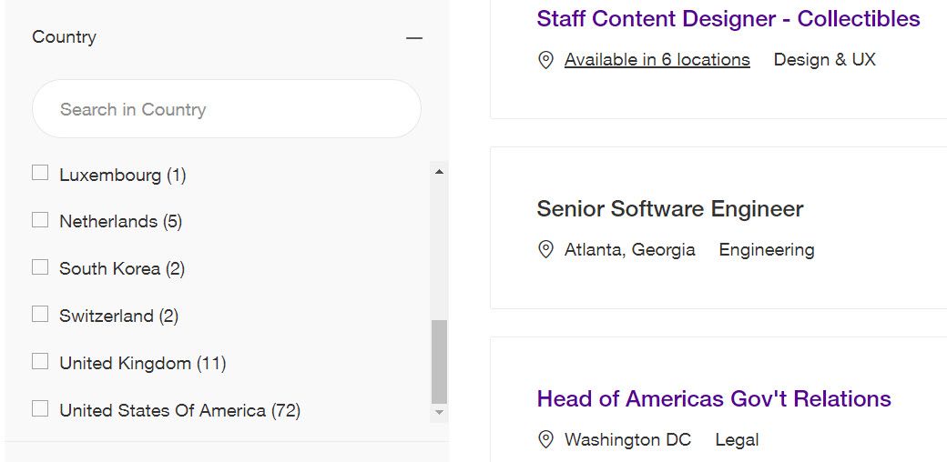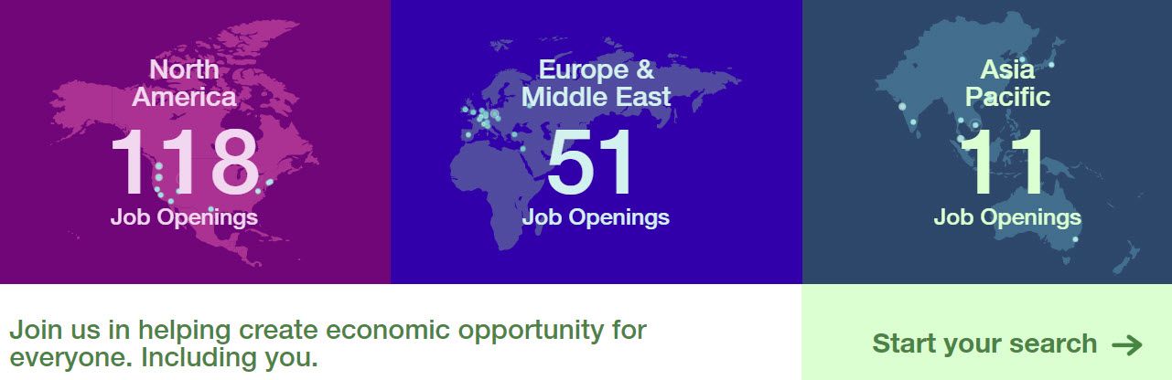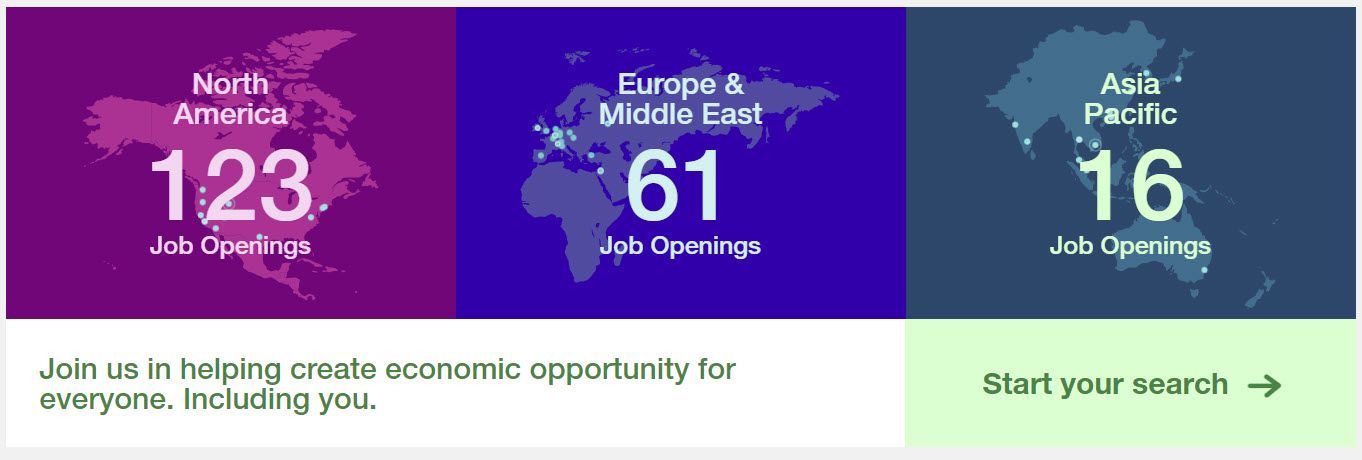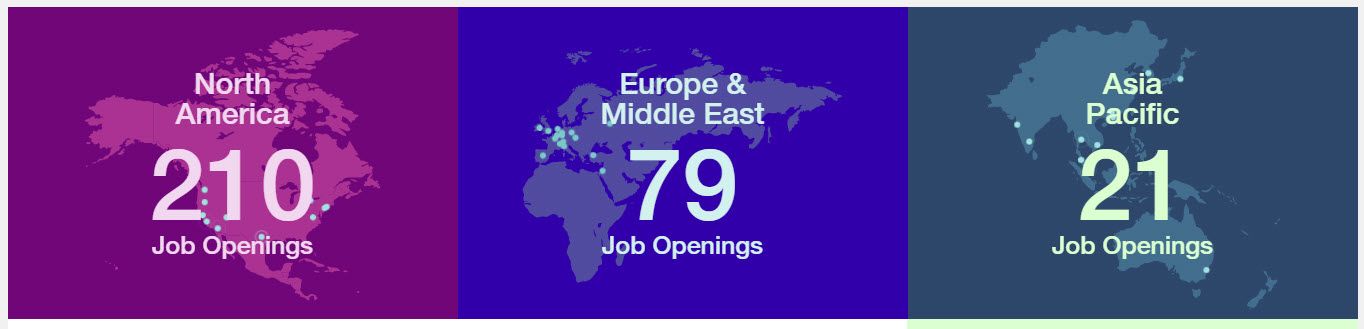 Today they are showing 77 job in North America, 39 in Europe and the Middle East and 24 in Asia Pacific.