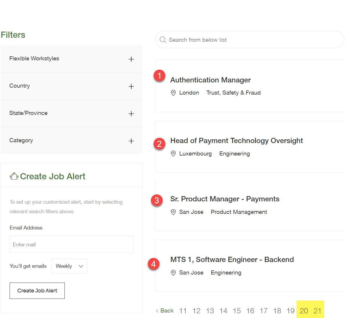 The ticker on the main careers page is also once again not updating in a timely fashion - the correct current number should be 143 (10 per page x 14 pages = 140, plus 3 on page 15).