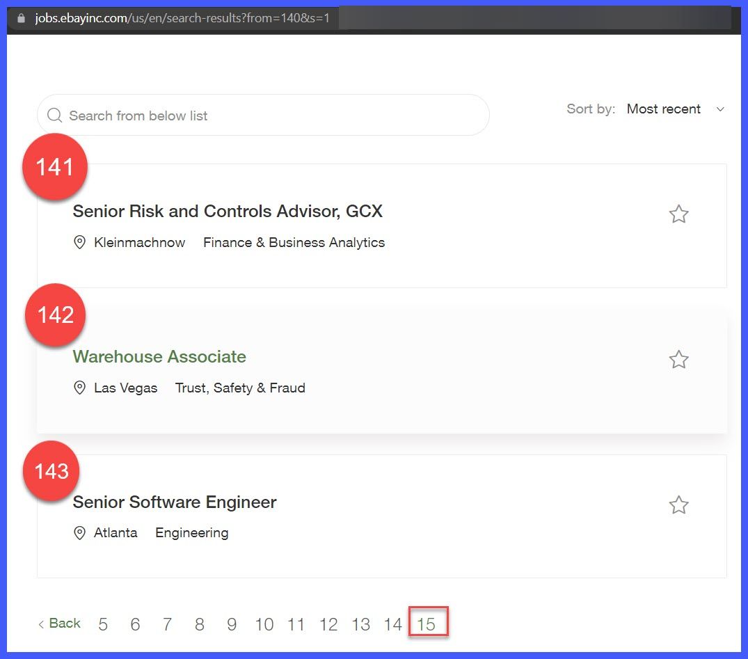 eBay thought they were being sneaky removing the running total on the actual jobs page, but at 10 postings per page, it's not hard to do the math. 😉