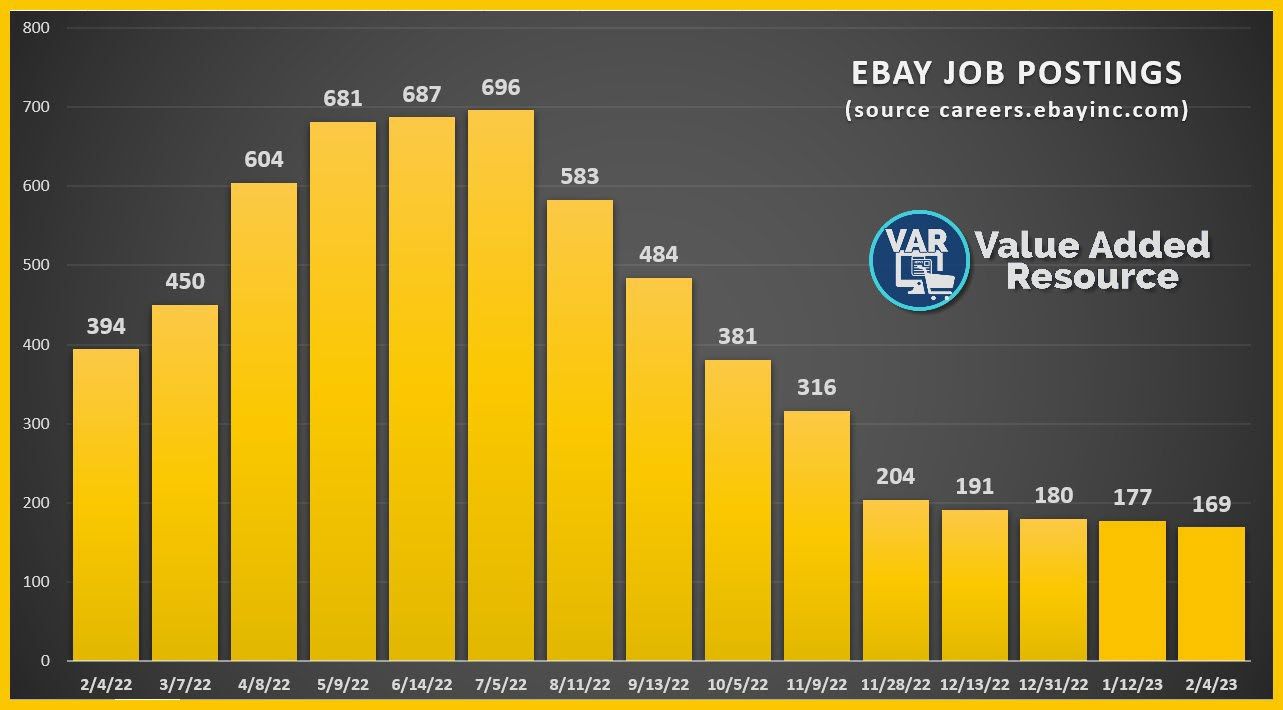 eBay further reduced the open job positions by the end of day, now standing at 149 for a ~24% reduction in just over a week.