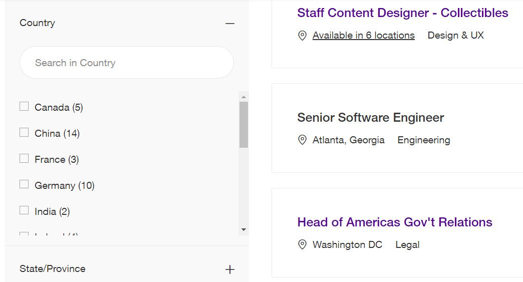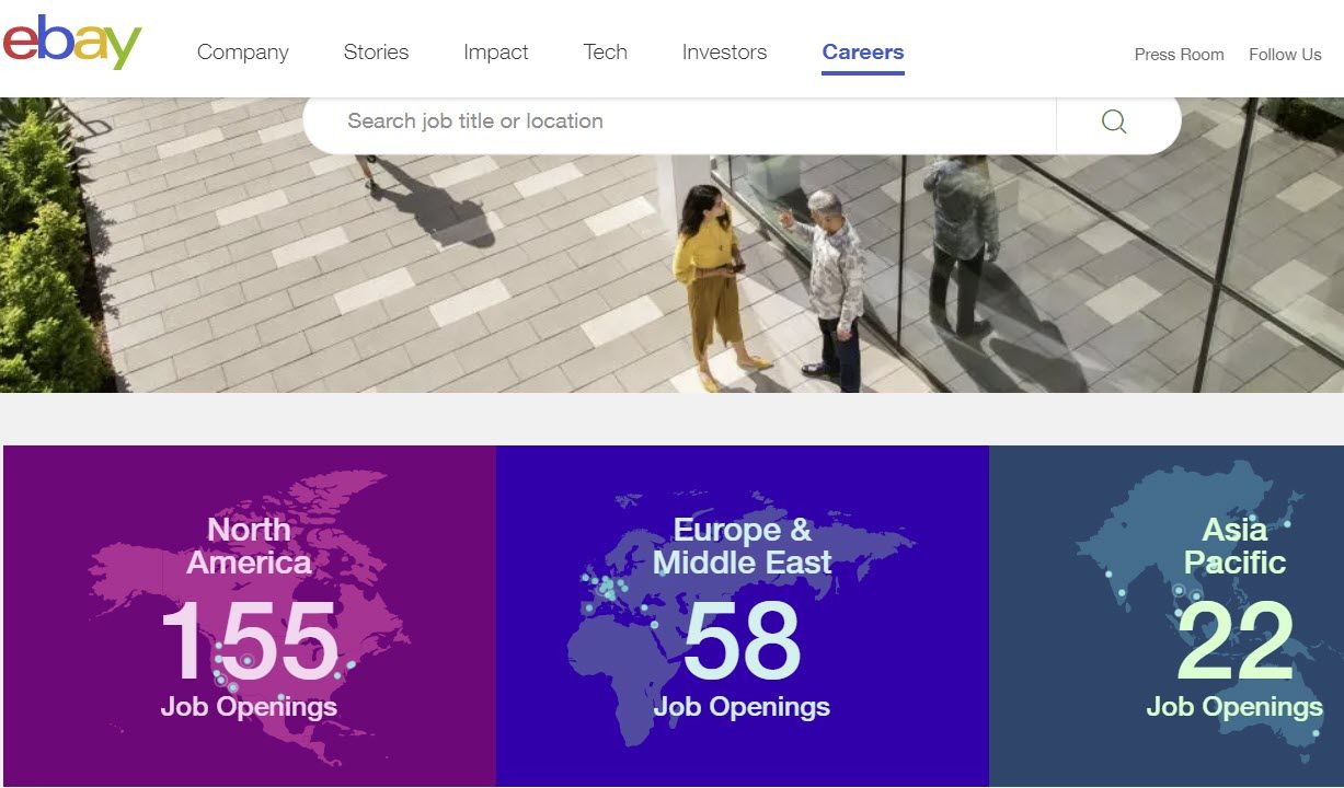 Open job positions at eBay have fallen to 162, with regional breakdown still missing from the main careers page.