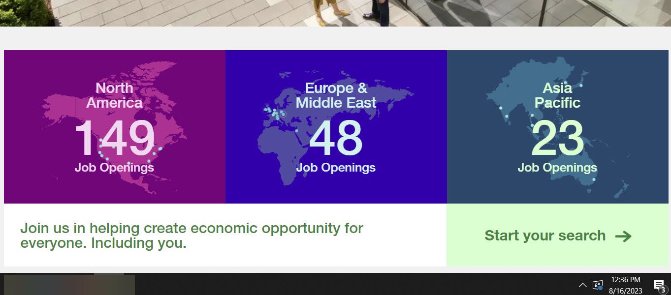 On August 16, 2023 there were 220 openings posted - 149 in North America, 48 in Europe and Middle East, and 23 in the Asia Pacific region.