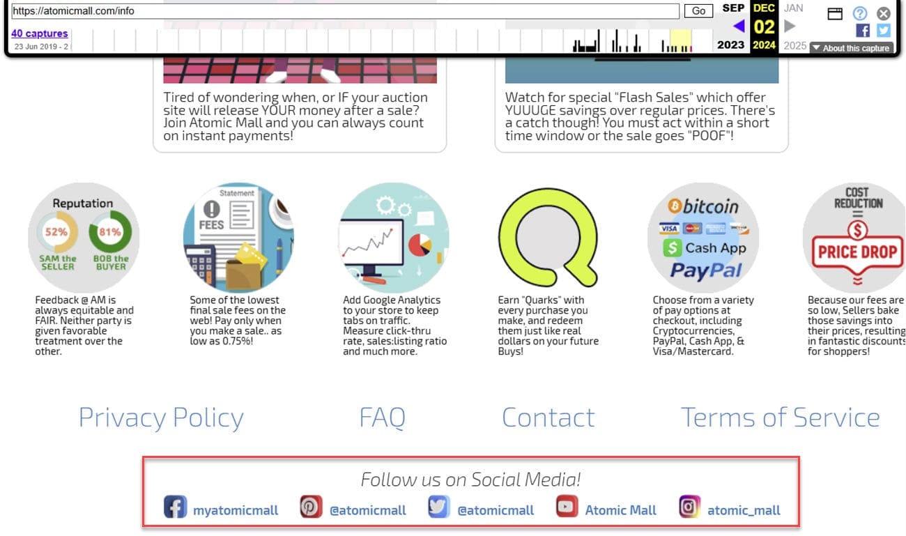 Review sites like TrustPilot also show activity for Atomic Mall seems to have died down toward the end of 2024 - and almost all of the social media profiles that were featured on the site's Info page as of December 2024 have also now been deleted.