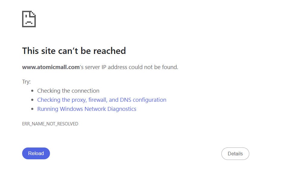 Interestingly, it appears there is currently a split between the www and non-www versions of the atomicmall.com site.