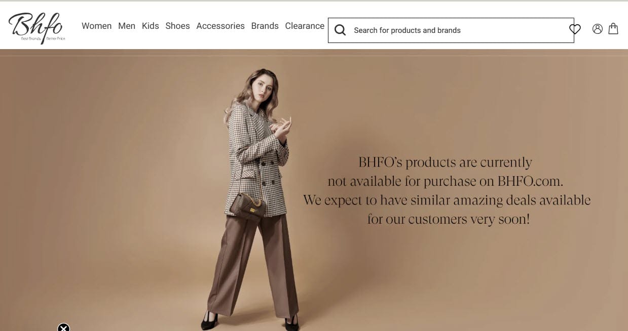 Their Poshmark account shows all items are sold out, but their account on livestream shopping marketplace Whatnot, BHFO Liquidations, also still shows upcoming live events scheduled, so the company may be looking to blow out inventory as they wind down operations by the end of next month.