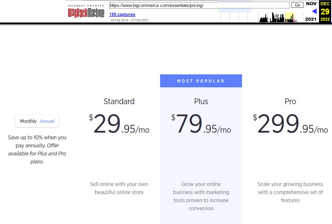 Previously, BigCommerce offered no annual discount for Standard and a 10% annual discount for Plus and Pro.