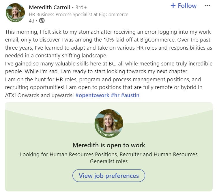 If you've been impacted by layoffs at BigCommerce, I'd love to chat! Requests for confidentiality will absolutely be respected.