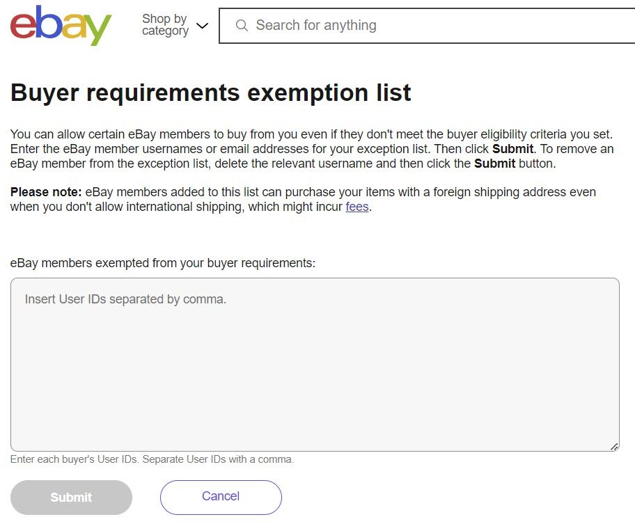 https://www.ebay.com/bmgt/ExemptBuyers