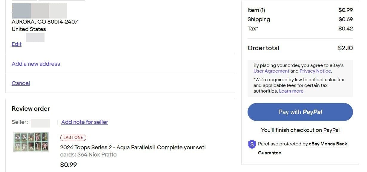 And a year later, eBay still hasn't changed their checkout display to comply with Colorado state law, continuing to add the Retail Delivery Fee in with the sales tax and creating more confusion for buyers.