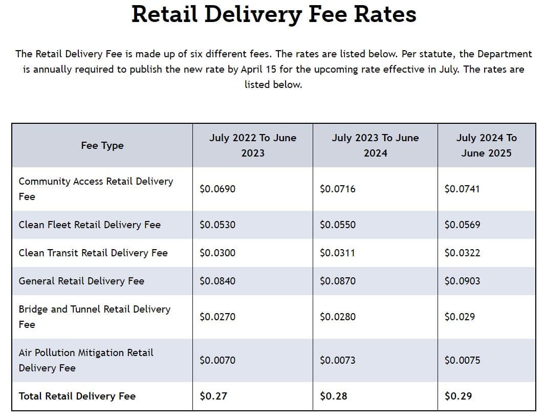 The Colorado Retail Delivery Fee has increased another penny, bringing it up to $0.29 through June 2025.