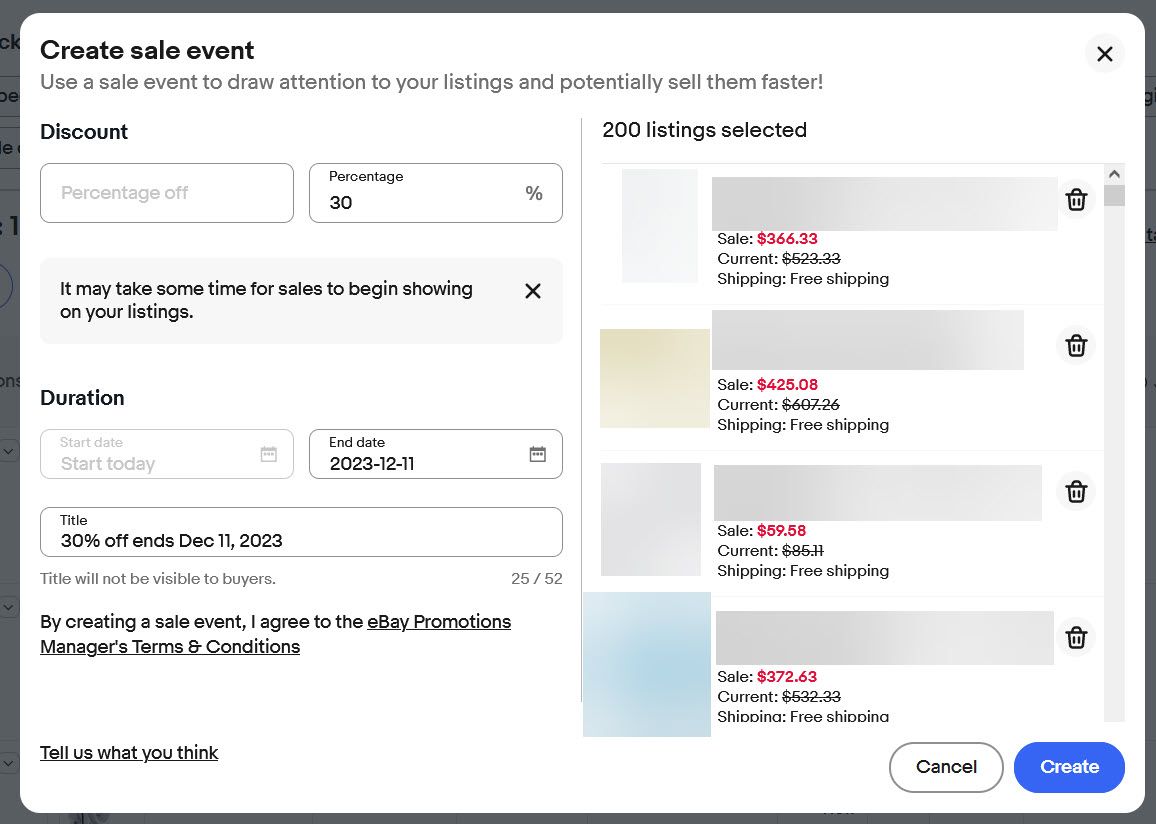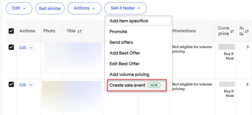 Here's how the new flow works to create sale events directly from the Active Listings page: