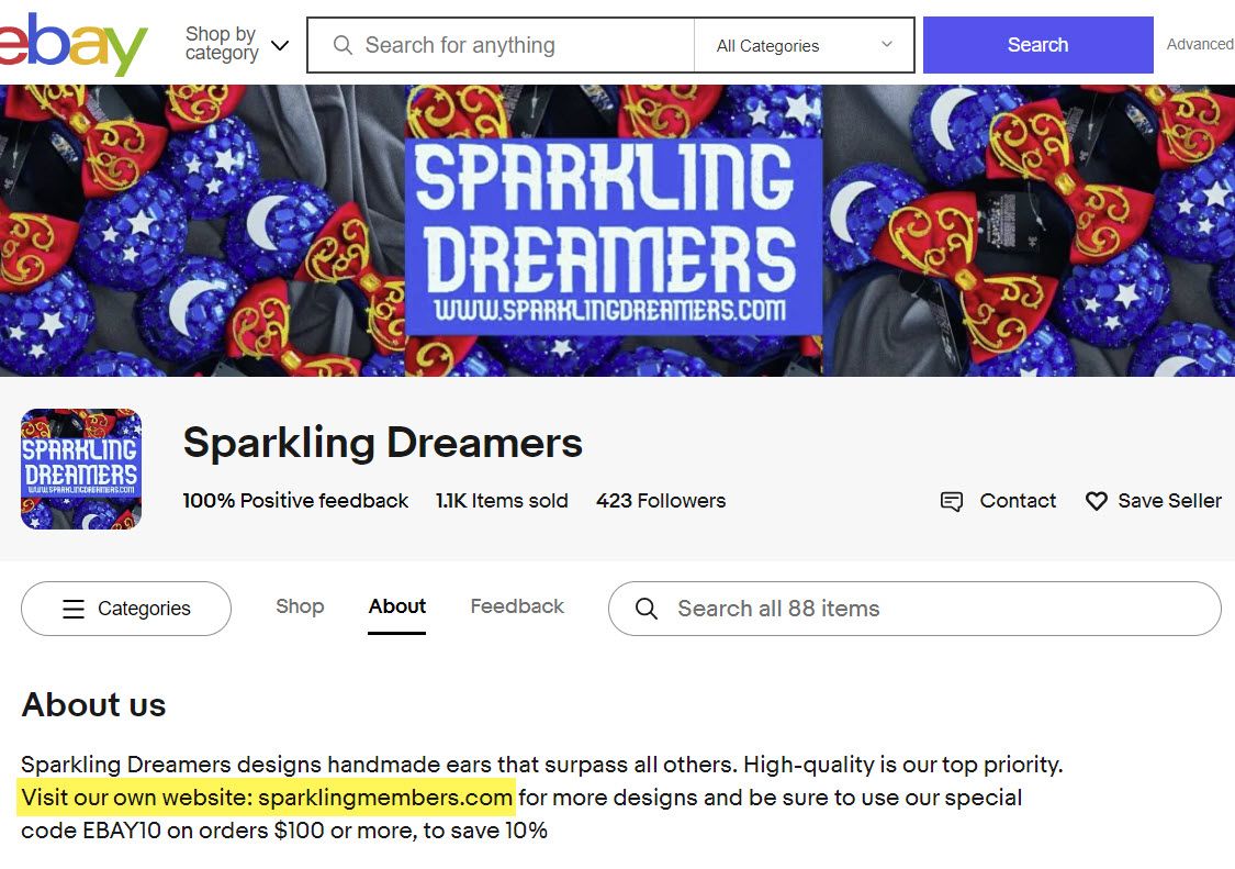 Meanwhile it looks like eBay has taken no action on the alleged infringement reports - nor do they apparently seem to care that this seller violates eBay's link policies by directing potential buyers off eBay to their direct website. 🤦♀️