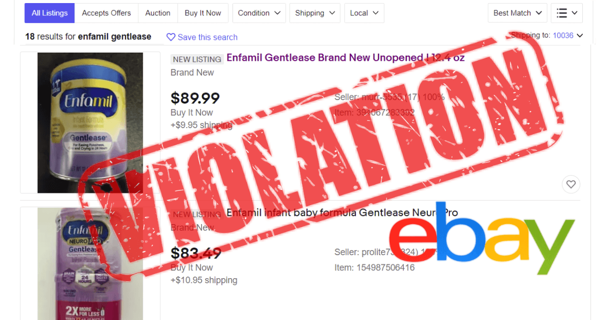 For example, when a national baby formula shortage hit, eBay did very little to stop price gouging scalpers from taking advantage of the situation.