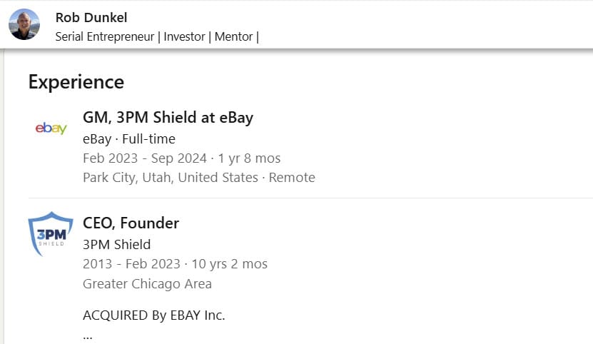 Interestingly, it appears that 3PM Shield founder Rob Dunkel, who joined eBay after the acquisition, quietly left the company in September.