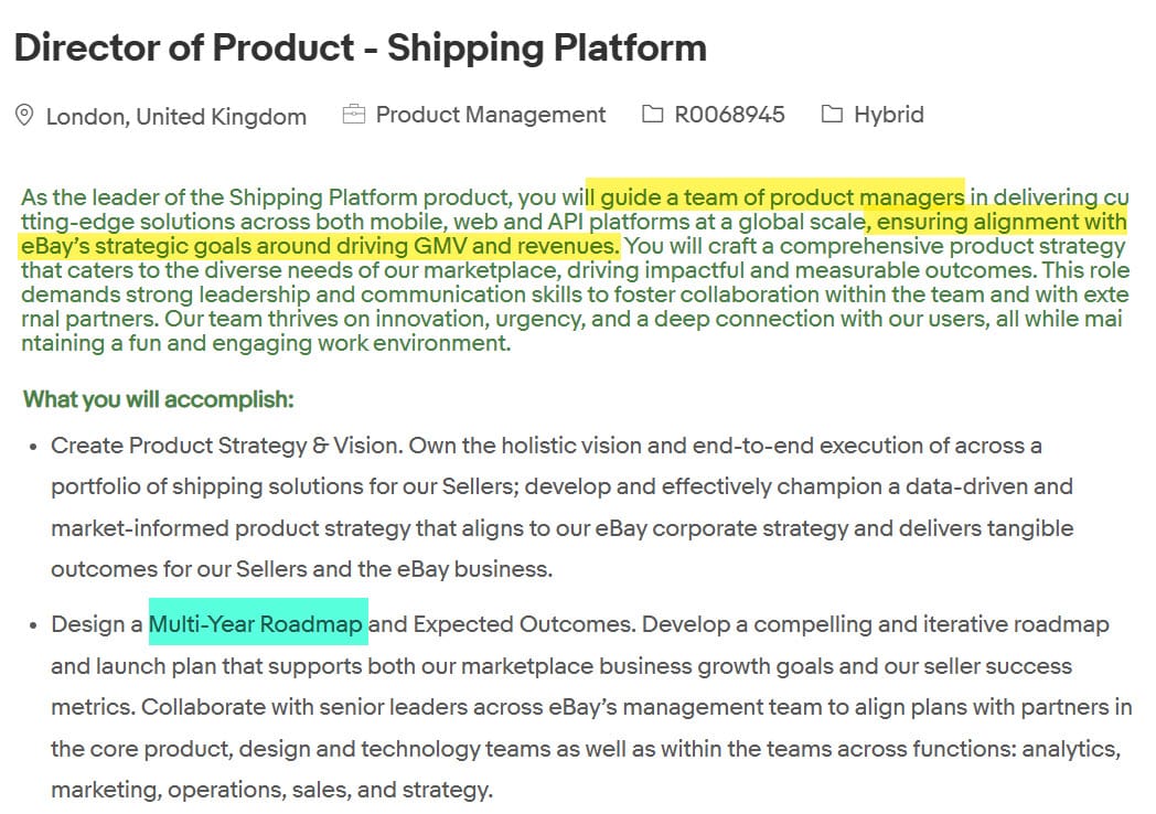 And clearly that's not all they have planned for ways to monetize shipping with a currently open job position for a Director of Product Shipping Platform based in London to "design a multi-year roadmap" in "alignment with eBay's strategic goals around driving GMV and revenue."