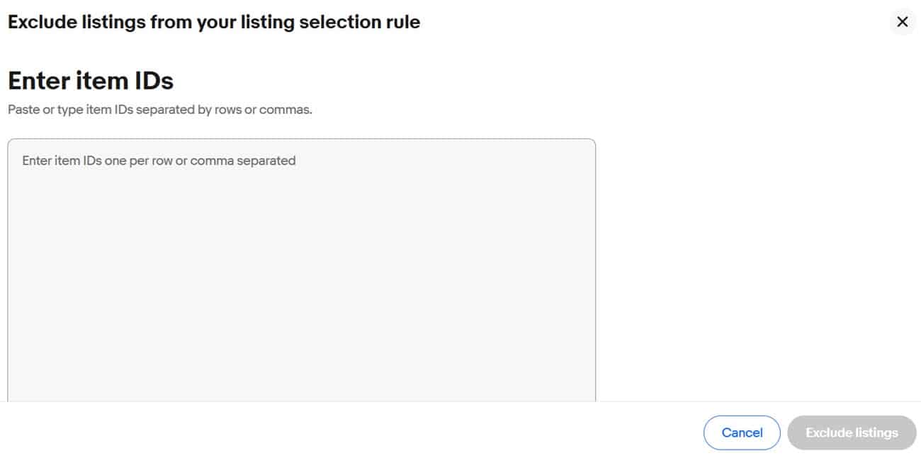 That will pop open a window where the seller can enter item IDs for the listings they wish to exclude, separated by rows or commas.