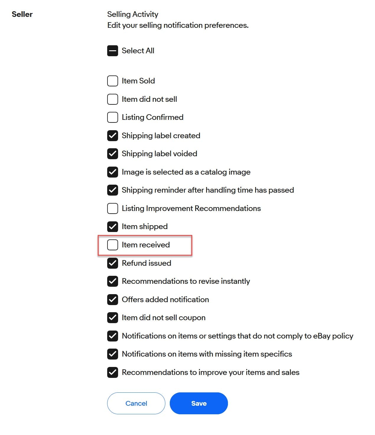 Others pointed to a new option under seller communication settings, assuming that unchecking the box for "item received" will stop these emails.