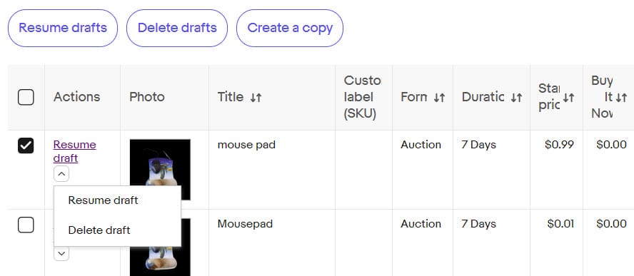 Luckily they have all been replaceable drafts so far, but it's a real waste of time to have to do so. But sooner or later I'm going to delete an important one I can't remake. I save old sold listings as drafts if they are an item I have more of to relist later, so once that sold listing is older than 45-90 days, I can't get that draft back, and I also have drafts with pictures that can't be replaced.