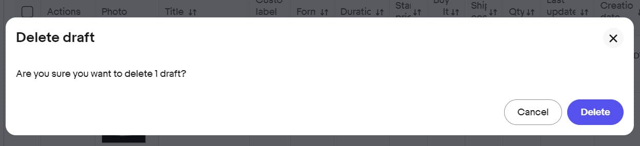 In contrast, in the desktop experience, the seller has to actively select the option to delete and then confirm the action before the draft disappears.