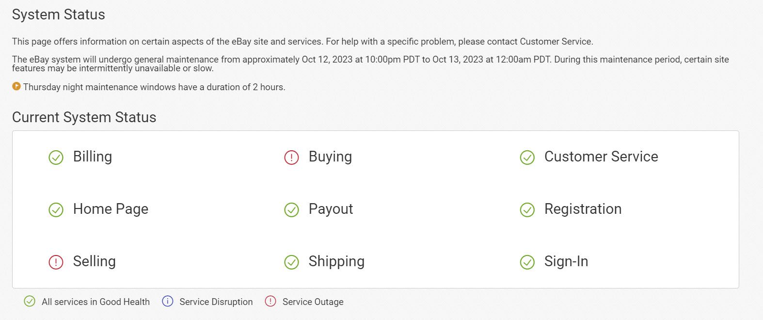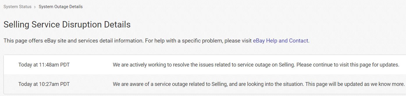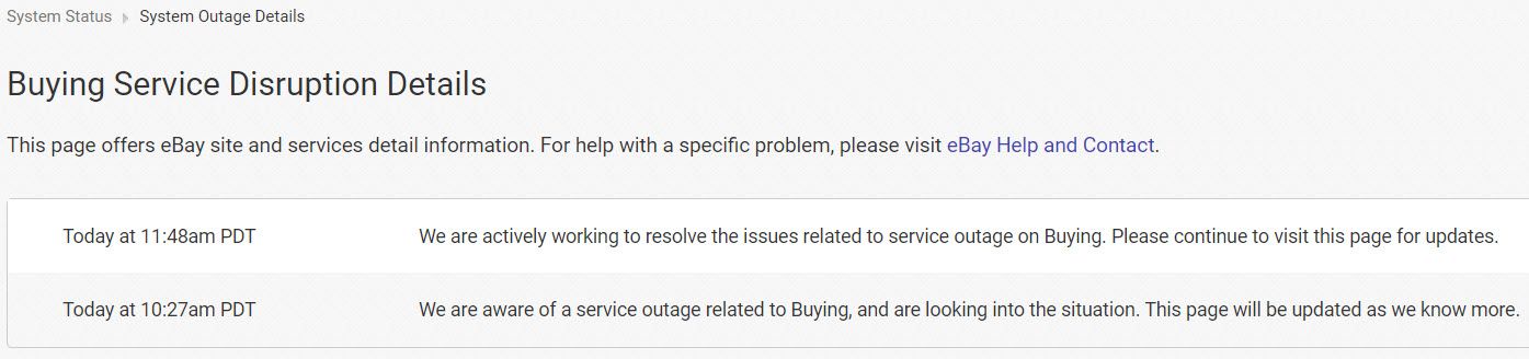 And surprisingly for once, eBay's own System Status page actually reflects the outage.