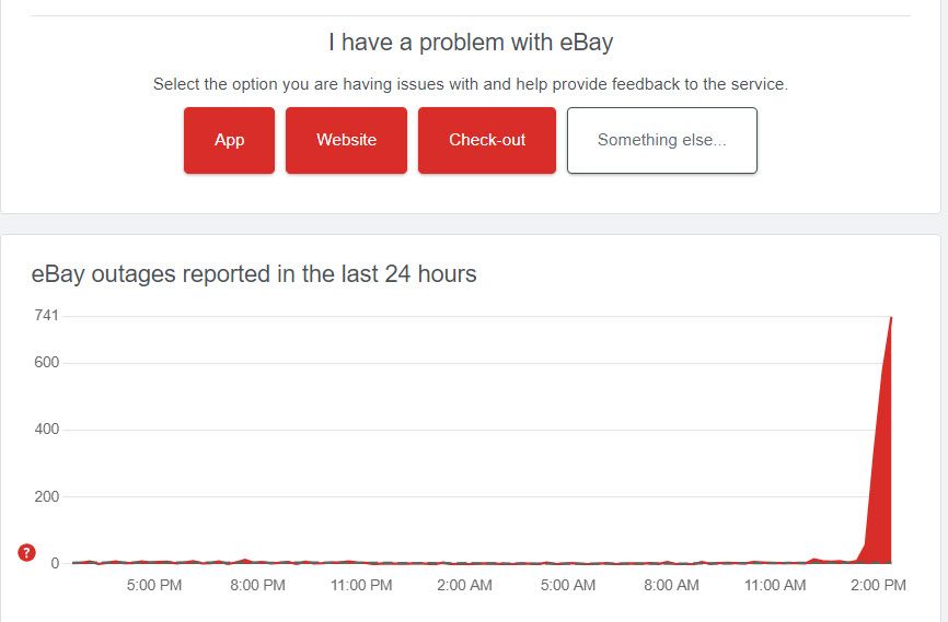 DownDetector shows a spike in problems at eBay starting around 2PM Eastern.
