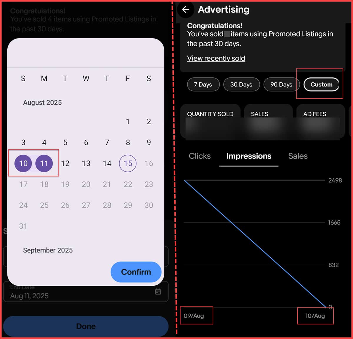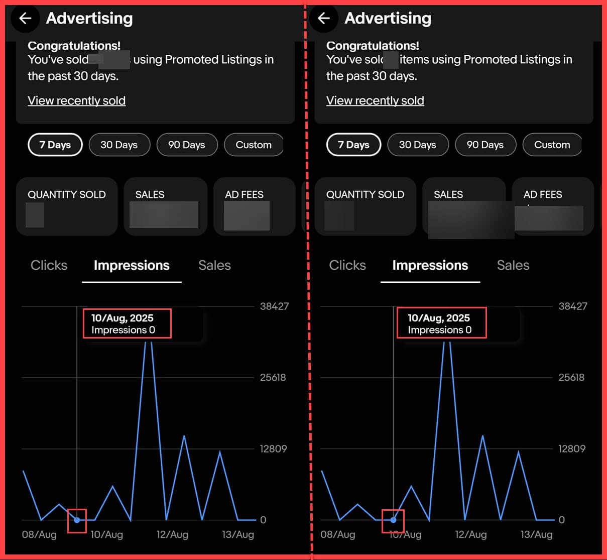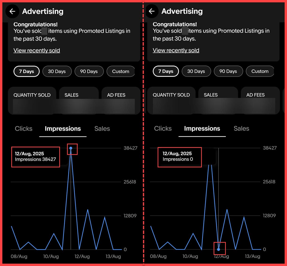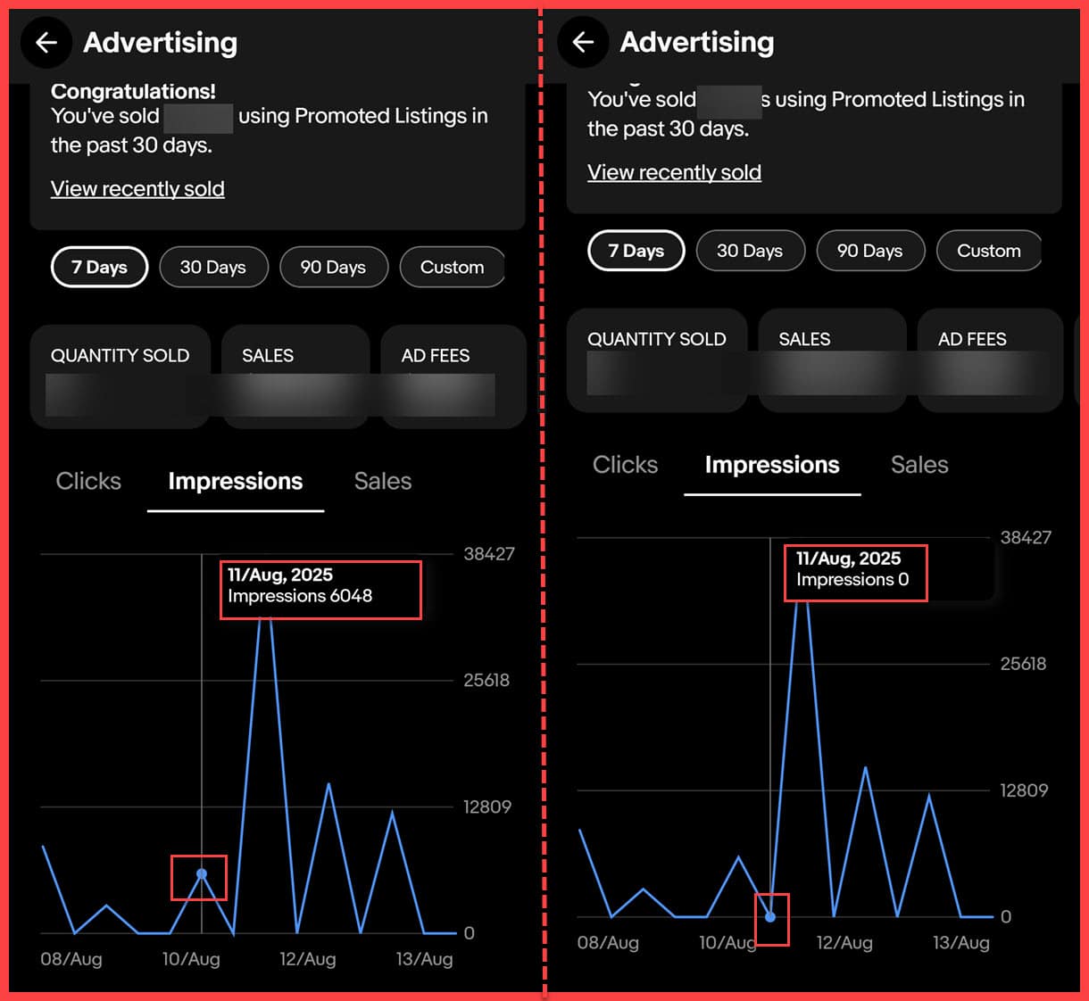 Are you missing ad impressions from August 10th and 11th in your eBay Promoted Listings dashboard and reports or seeing incorrect data in the new Advertising section of the app? Let us know in the comments below!