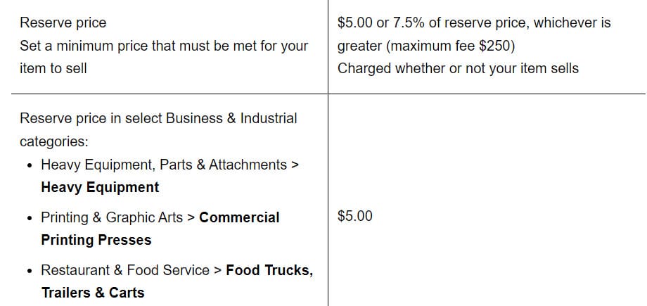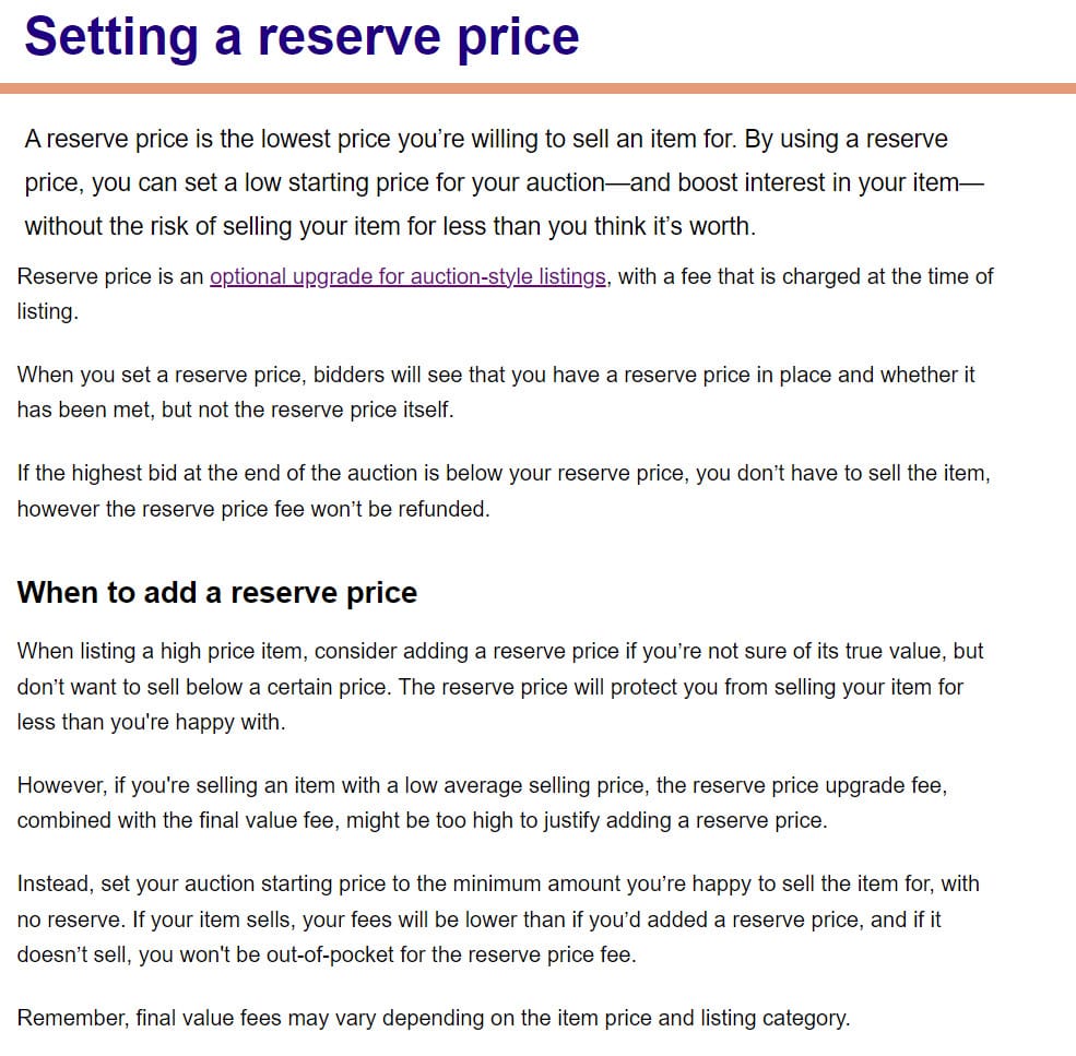 For many years, auctions on eBay have had the option to set a Reserve Price that is the minimum amount the seller is willing to sell an item for. If the reserve price isn't met, the item won't be sold but the seller must still pay the reserve price fee - making it a potentially expensive option and still leaving the seller with the possibility of no sale at the end of the auction.