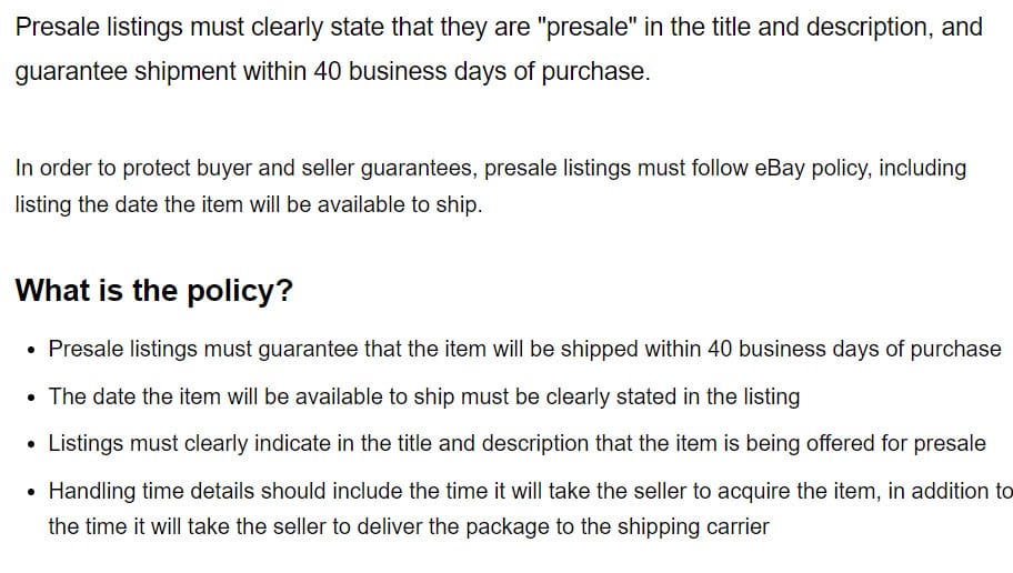 On the other hand, eBay does also occasionally use Australia as a test market for various new features and policies like Guaranteed Fit for Parts and discounted fees for sharing listings on social media - so it's not out of the realm of possibility that eBay may consider expanding these fulfillment and presale policies to other countries at some point in the future.