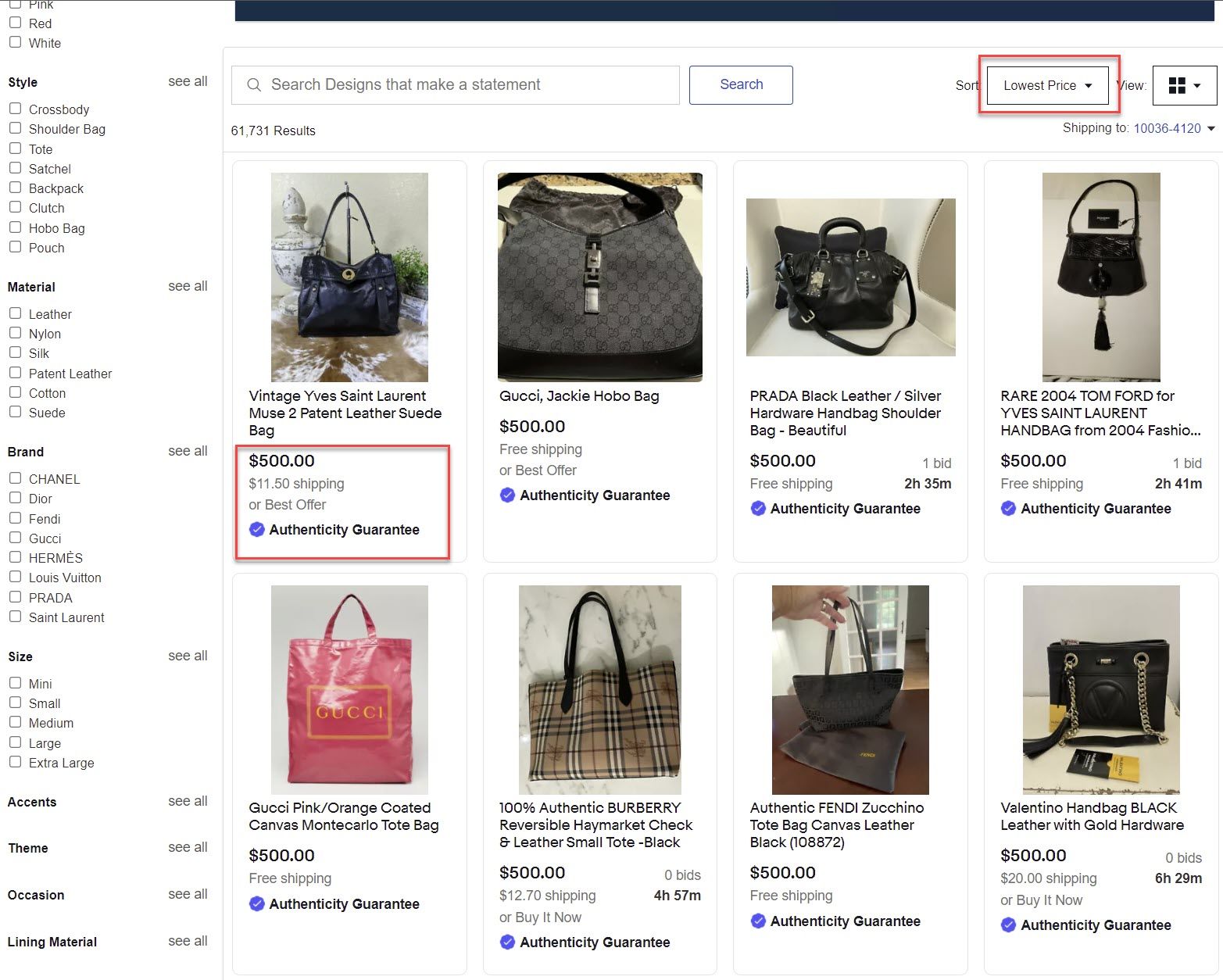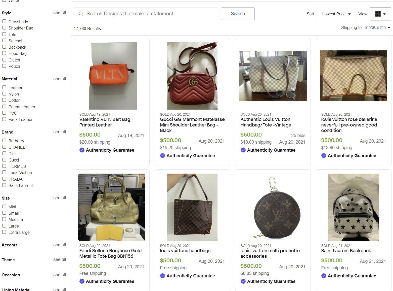 In contrast, when it comes to Authenticity Guaranteed for handbags, eBay appears to be very strictly enforcing the minimum price requirement.