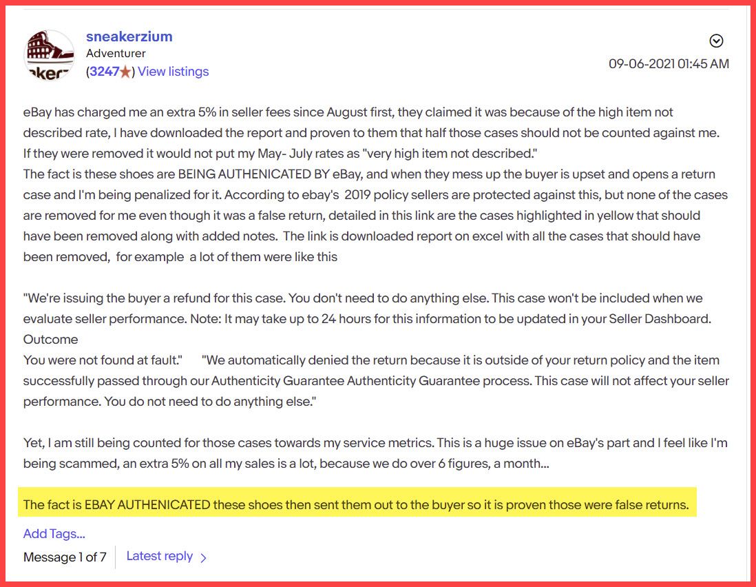 First and foremost, this seller must be compensated for the extra fees they should never have been charged. Beyond that, eBay needs to immediately enact protections to stop this from ever happening again to any seller of authenticated items.