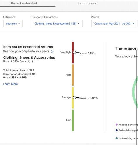 Your 'Item not as described' rate is the percentage of your transactions where buyers requested returns for the following reasons: