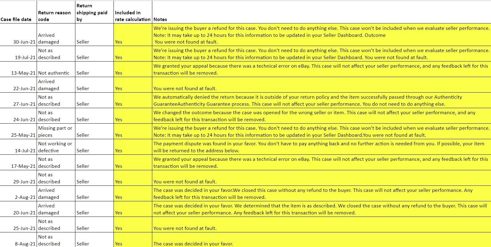 eBay's own notes on those cases prove conclusively they were "false claims", yet that same report also shows those cases are being included in the rate calculation.