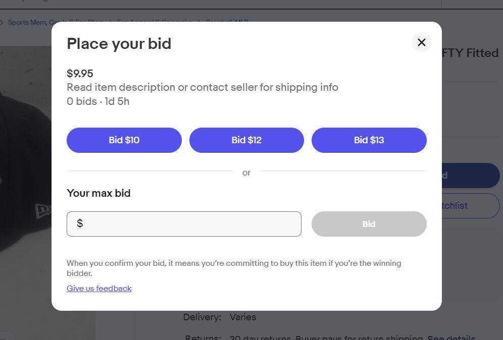 eBay has been tinkering with the user experience again, replacing the old bid functionality with a new pop up display that offers suggested bids or a blank box to type your bid into and it appears this pop up bid box is not functioninging correctly for some buyers.