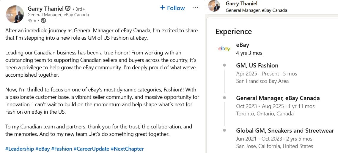 eBay Still Looking For New Canada Leadership As GM Garry Thaniel Moves Back To US To Lead Fashion Category