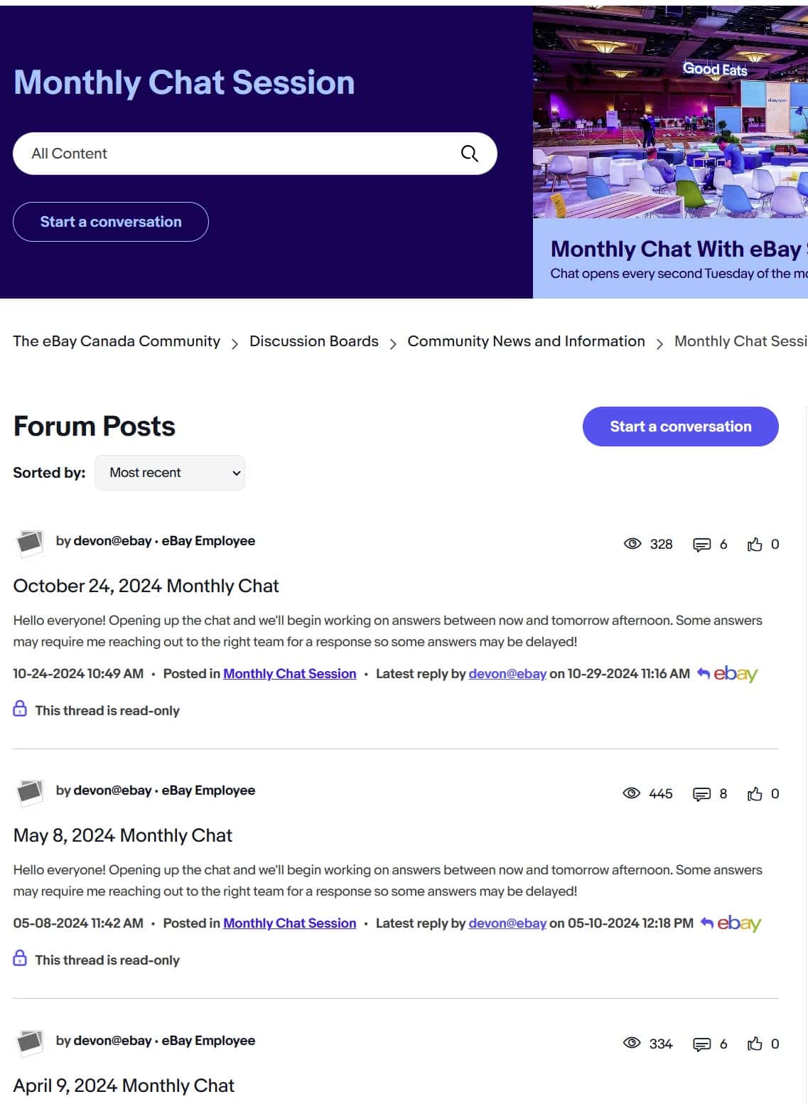 The open topic Canada community chat had been happening on a regular monthly schedule up through May of 2024 at which point it just stopped happening with no updates or information from eBay staff until another one was finally scheduled in October 2024.