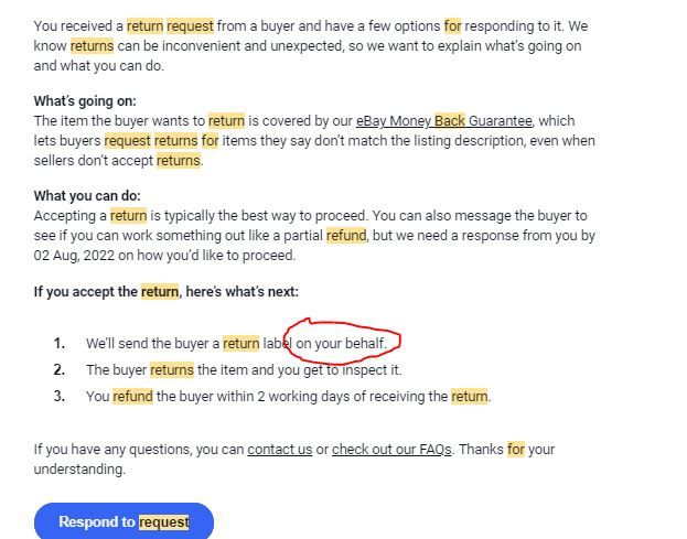 Hi all just a heads up, i hope this is some sort of glitch or joke from eBay but i noticed this morning after asking a customer to open a return yesterday under the "doesn't fit" option as he had already returned something to myself but i couldn't refund as no return had been opened.
