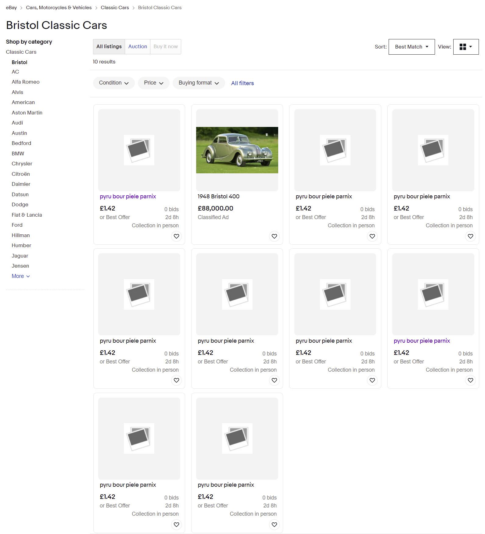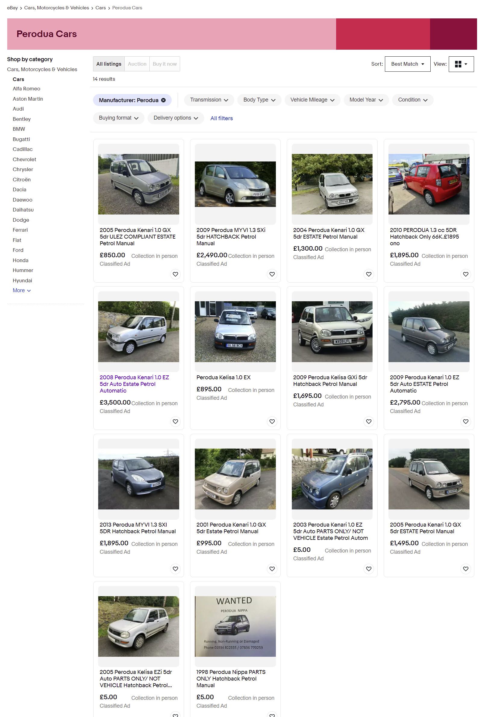 The original categories used appear to be more obscure car types, in these examples Bristol and Perodua. These categories show very few results compared to more popular makes like Audi. Perhaps eBay doesn't monitor obscure or smaller categories as closely?